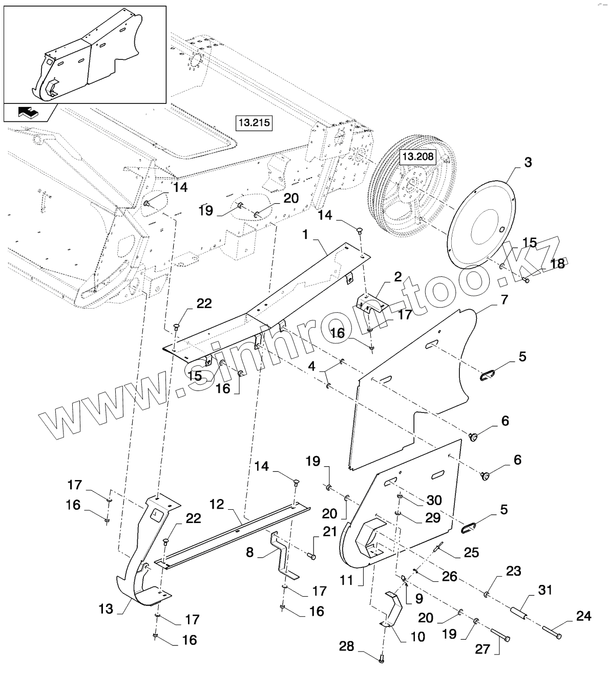 Каталог запасных частей к технике: New Holland CSX7080 (D660). FEEDER SHIELDINGS - FOR LATERALE ONLY
