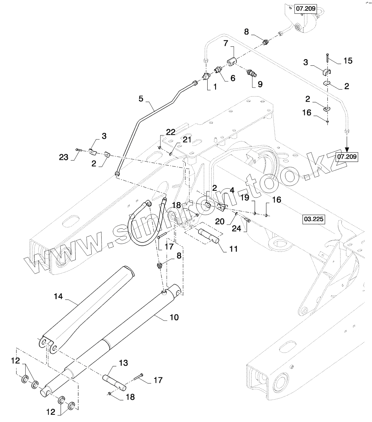Каталог запасных частей к технике: New Holland CSX7080 (D660). FRAME HYDRAULICS - FOR LATERALE ONLY