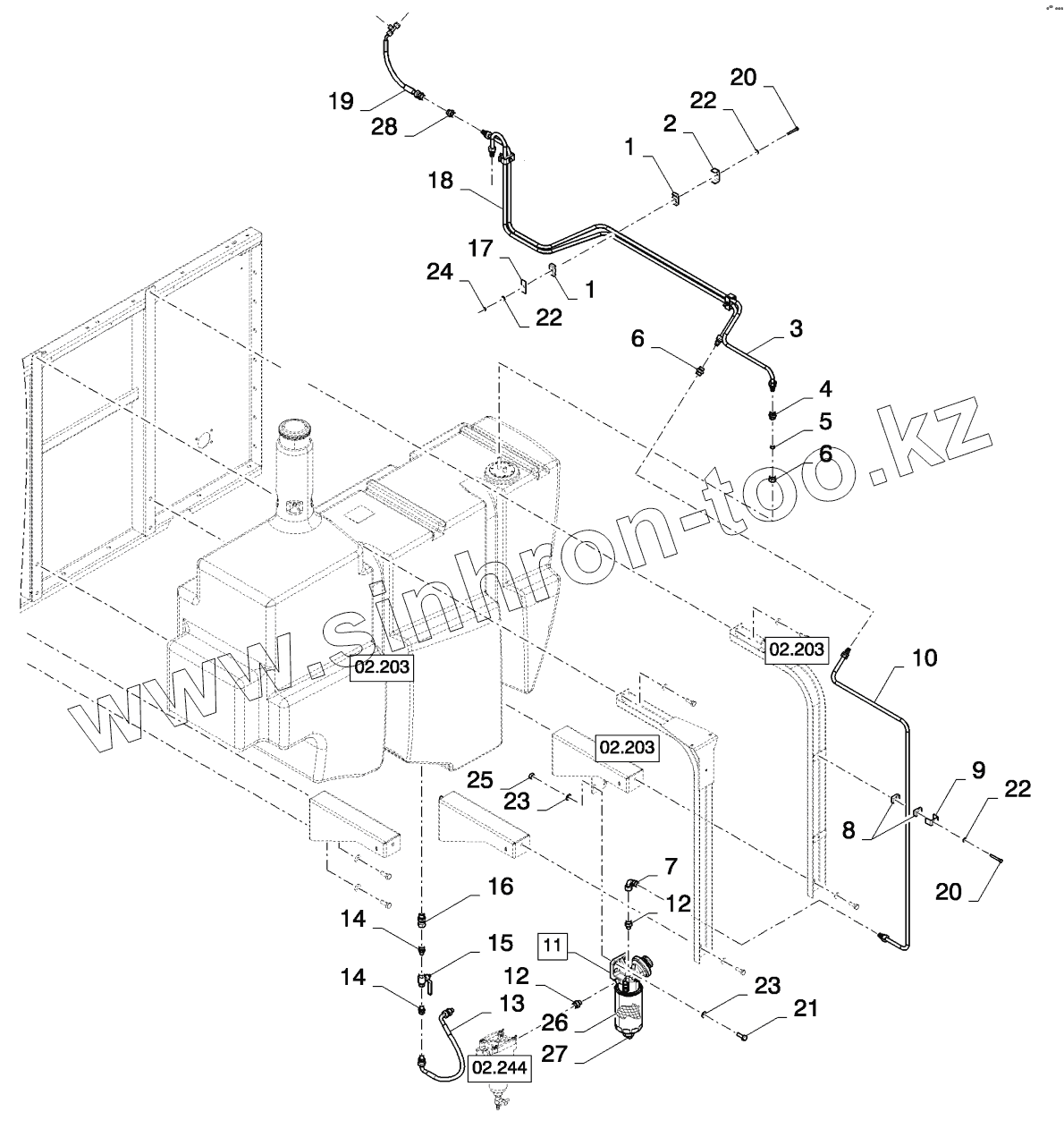 Каталог запасных частей к технике: New Holland CSX7080 (D660). FUEL TANK, PIPE LINES