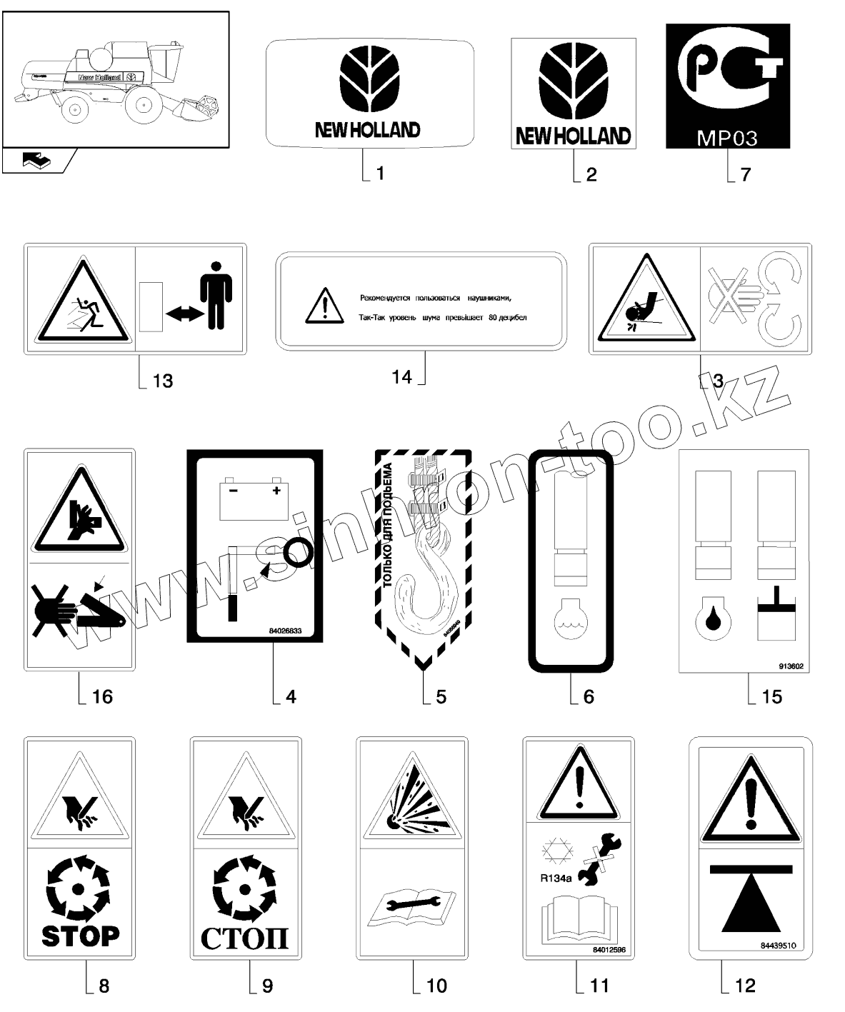 Каталог запасных частей к технике: New Holland CSX7080 (D660). SAFETY AND INSTRUCTION DECALS