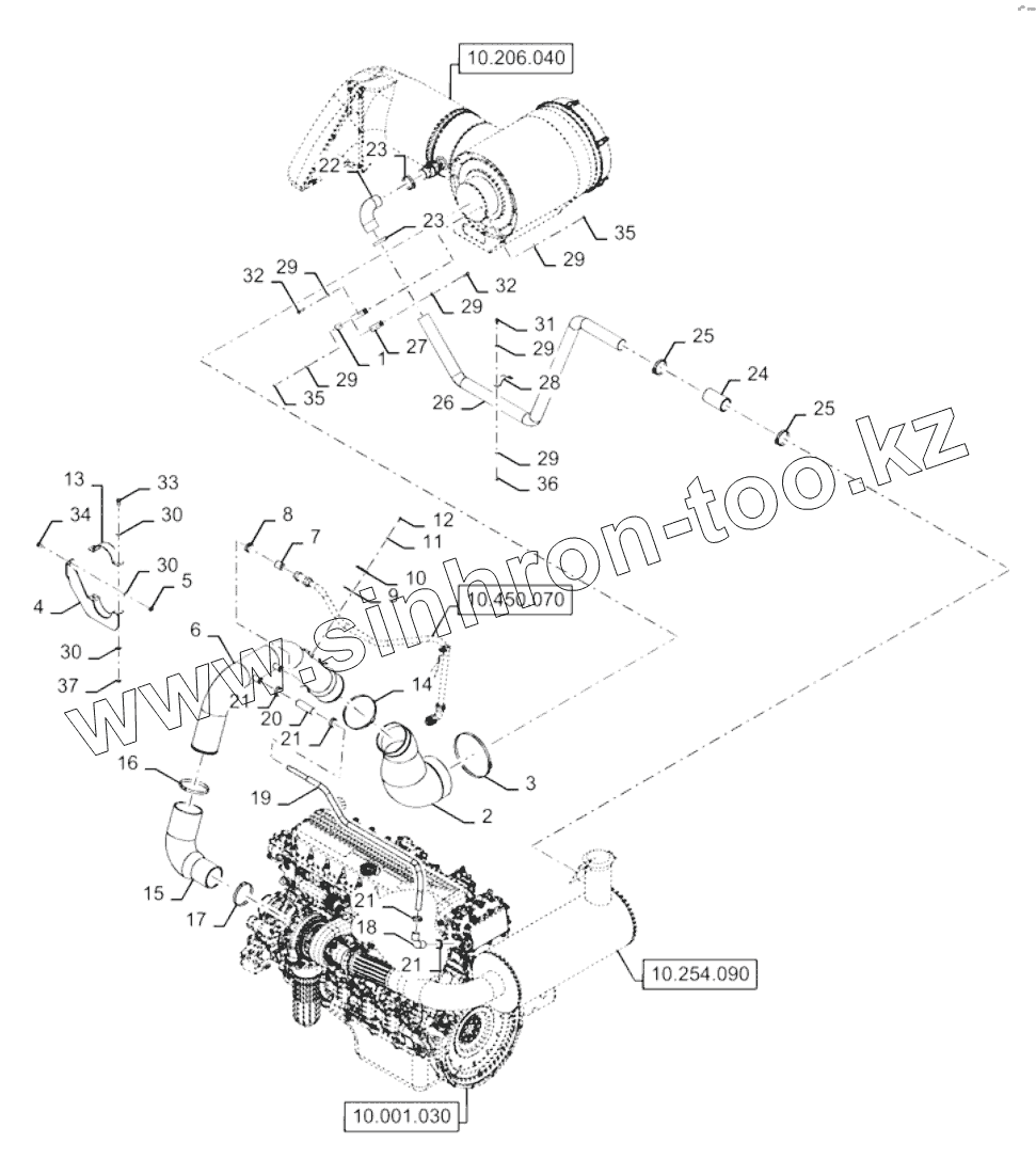 Каталог запасных частей к технике: New Holland Комбайн CR9080 E3 (часть 1). ENGINE IN- AND OUTLET