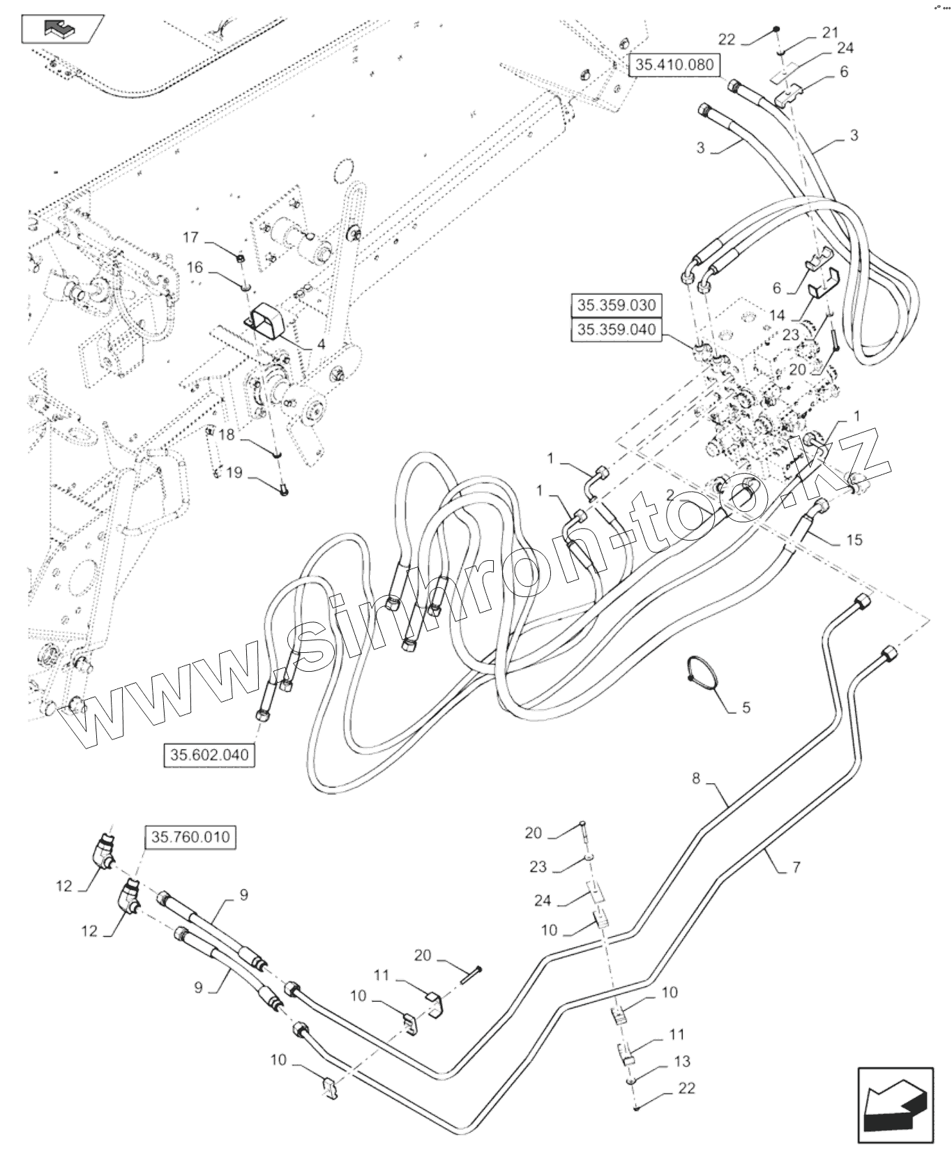 Каталог запасных частей к технике: New Holland Комбайн CR9080 E3 (часть 1). FEEDER HYDRAULIC TUBES
