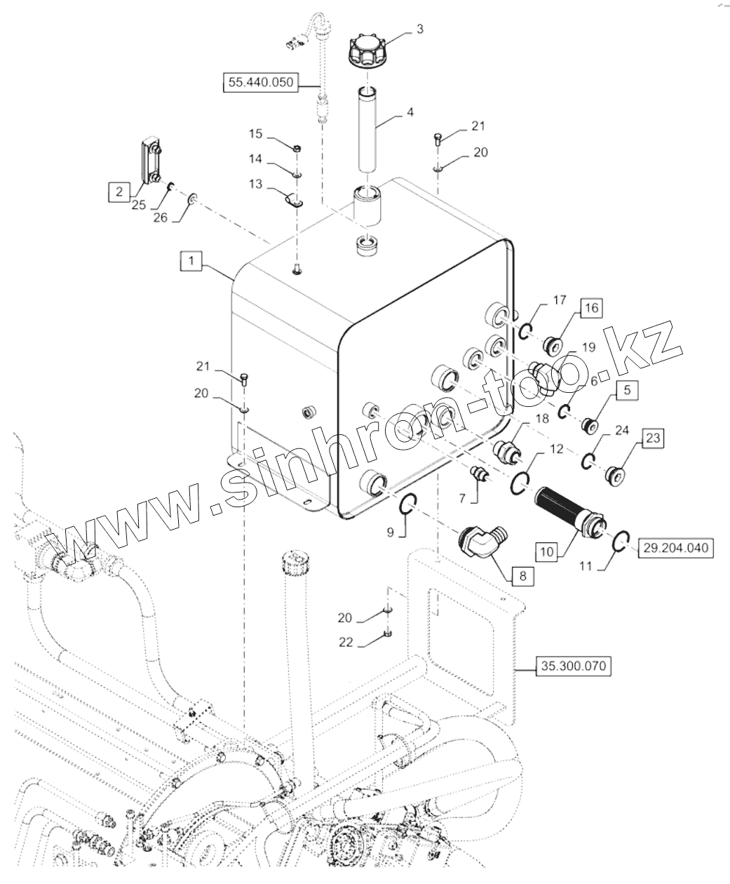 Каталог запасных частей к технике: New Holland Комбайн CR9080 E3 (часть 1). HYDRAULIC TANK