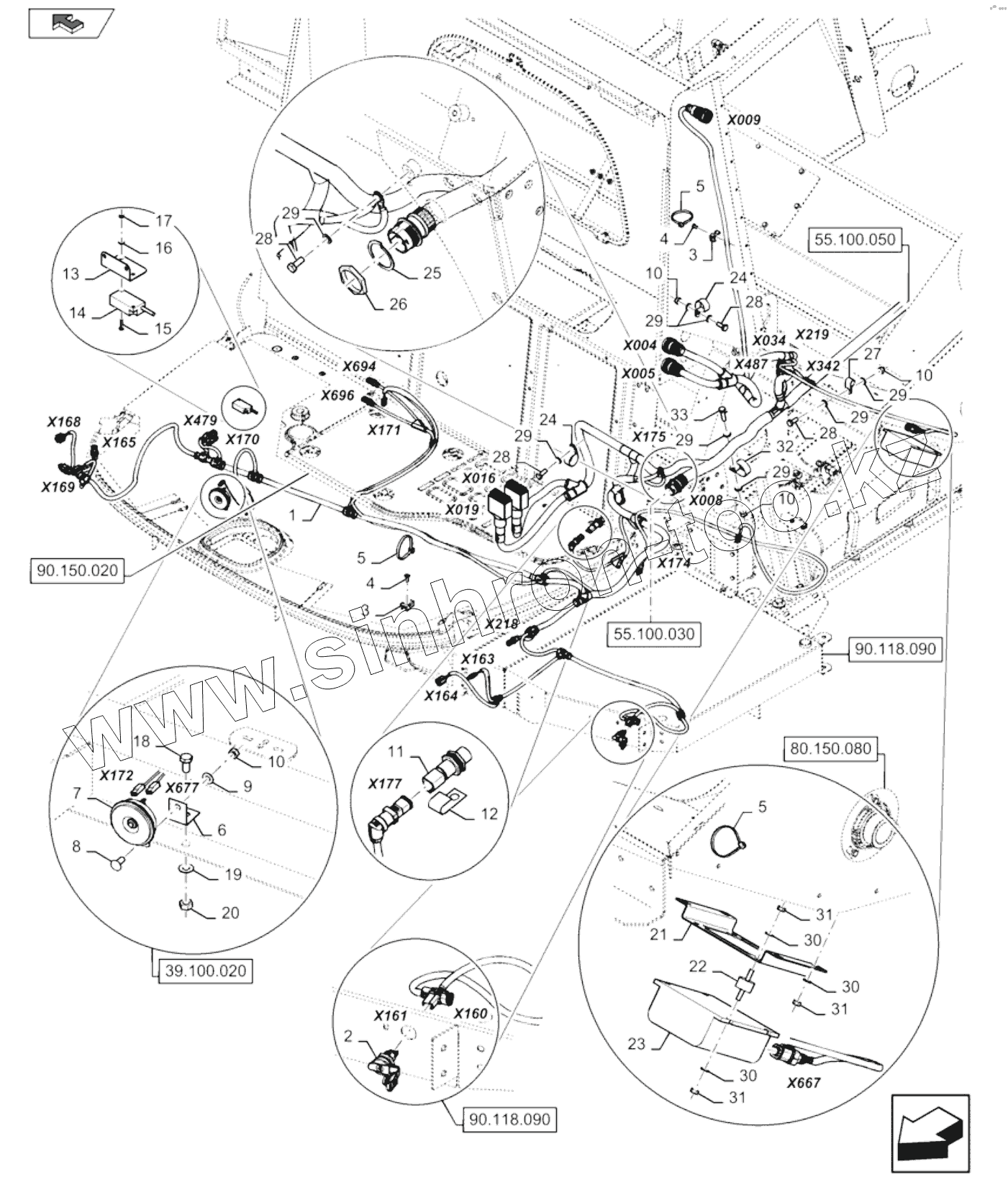 Каталог запасных частей к технике: New Holland Комбайн CR9080 E3 (часть 1). MAIN WIRE HARNESS, CAB