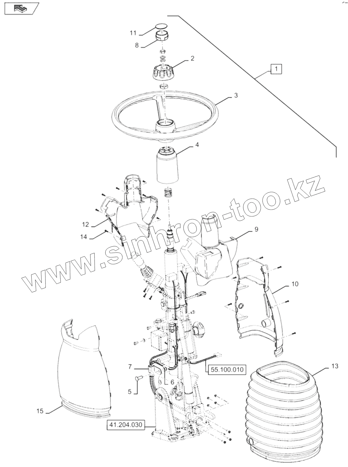 Каталог запасных частей к технике: New Holland Комбайн CR9080 E3 (часть 1). STEERING COLUMN