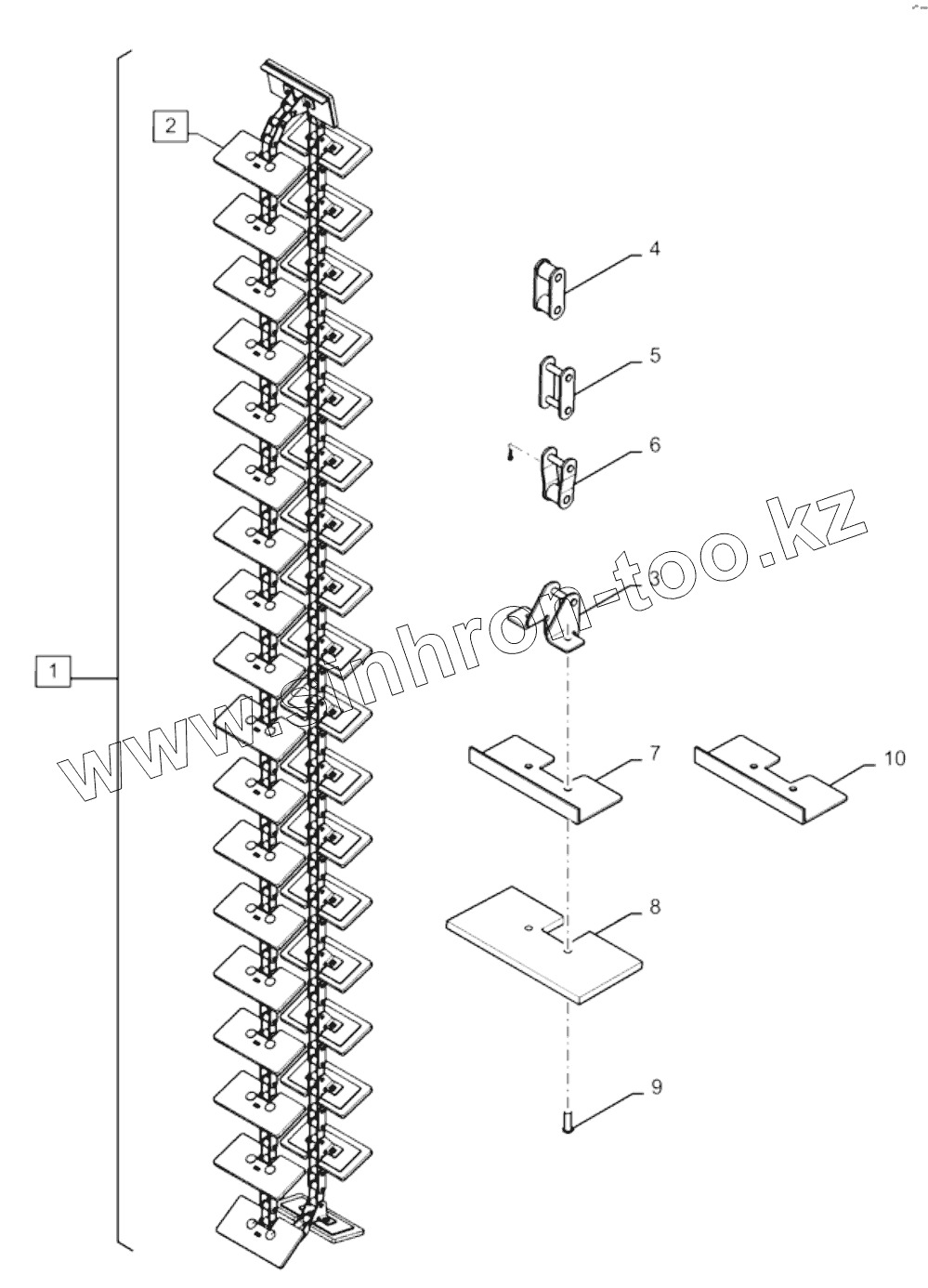 Каталог запасных частей к технике: New Holland Комбайн CR9080 E3 (часть 2). GRAIN ELEVATOR CHAIN