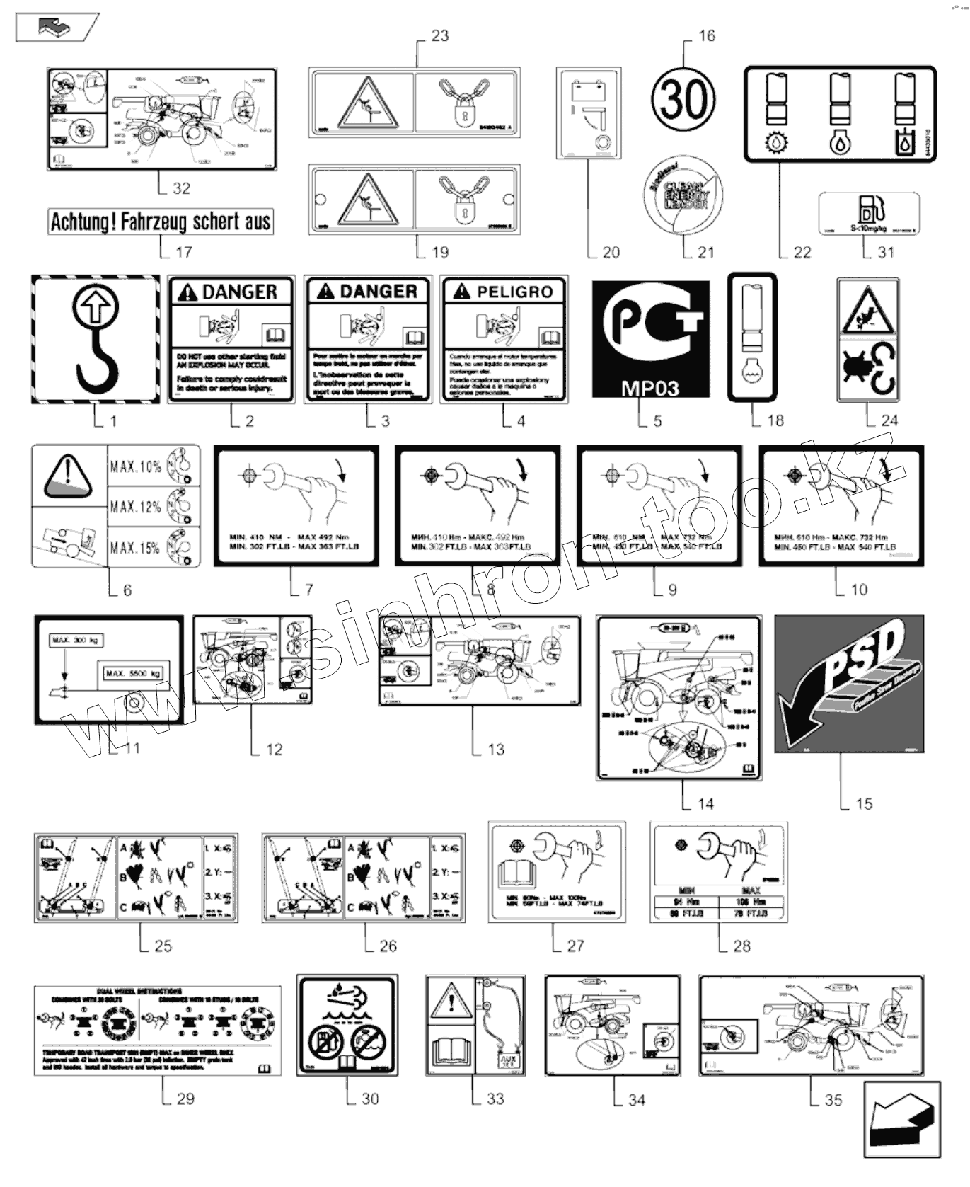 Каталог запасных частей к технике: New Holland Комбайн CR9080 E3 (часть 2). SAFETY AND INSTRUCTION DECALS