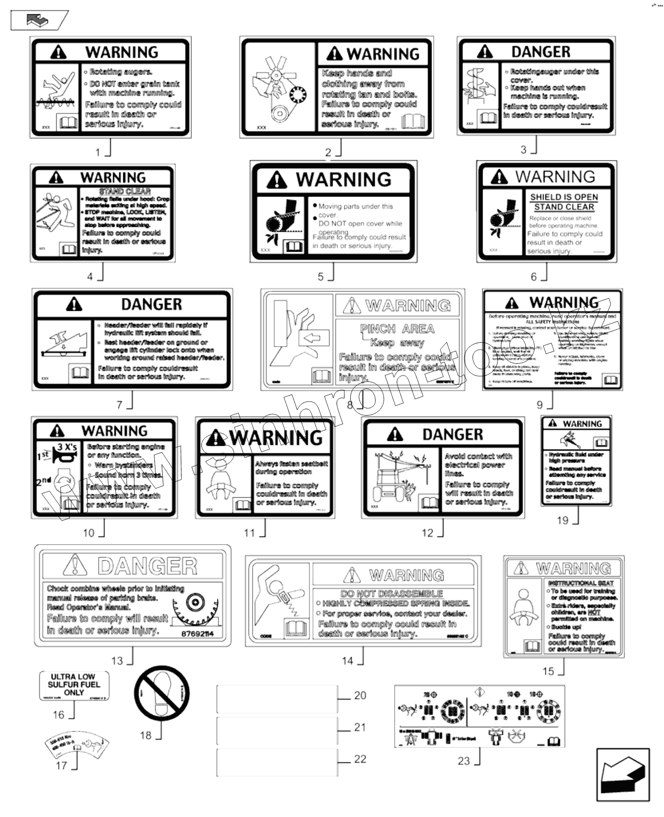 Каталог запасных частей к технике: New Holland Комбайн CR9080 E3 (часть 2). SAFETY AND INSTRUCTION DECALS