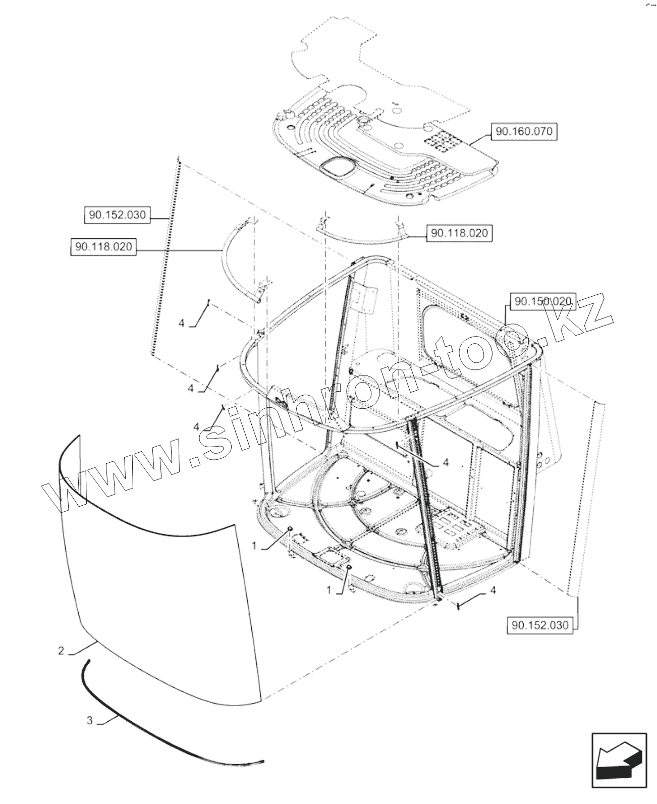 Каталог запасных частей к технике: New Holland Комбайн CR9080 E3 (часть 2). WINDSHIELD GLASS