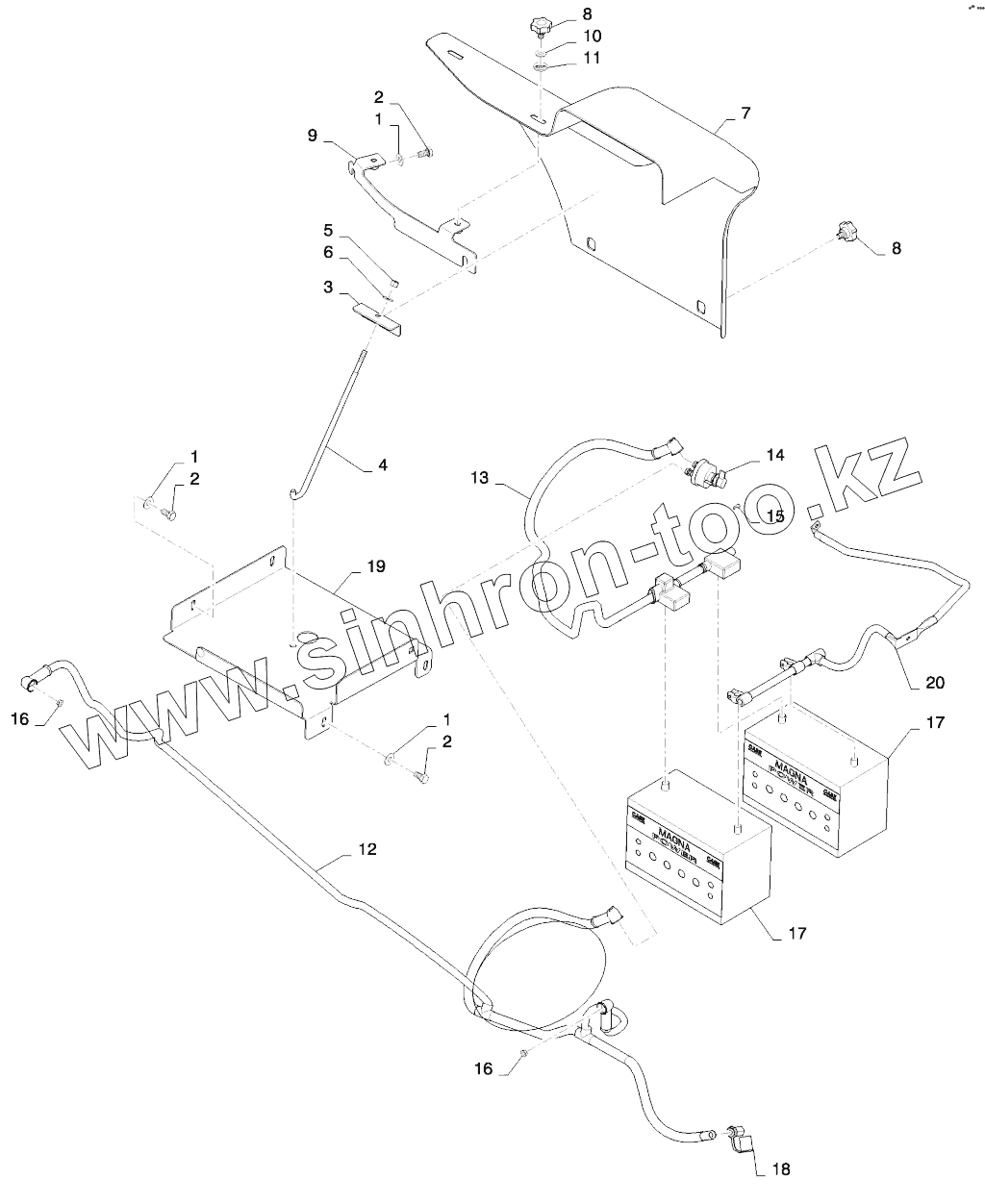 Каталог запасных частей к технике: New Holland T8. BATTERY, BATTERY BOX and CABLES