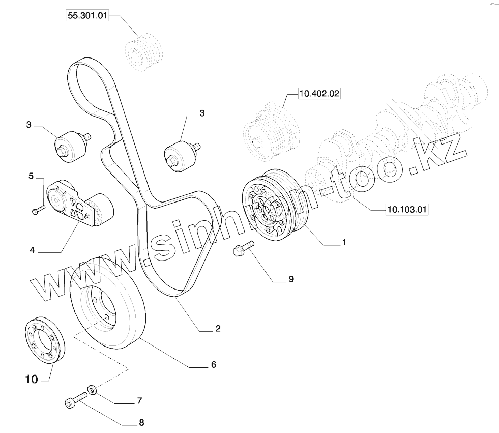 Каталог запасных частей к технике: New Holland T8. DAMPER - PULLEY (504220573 - 504363515 - 504323018)