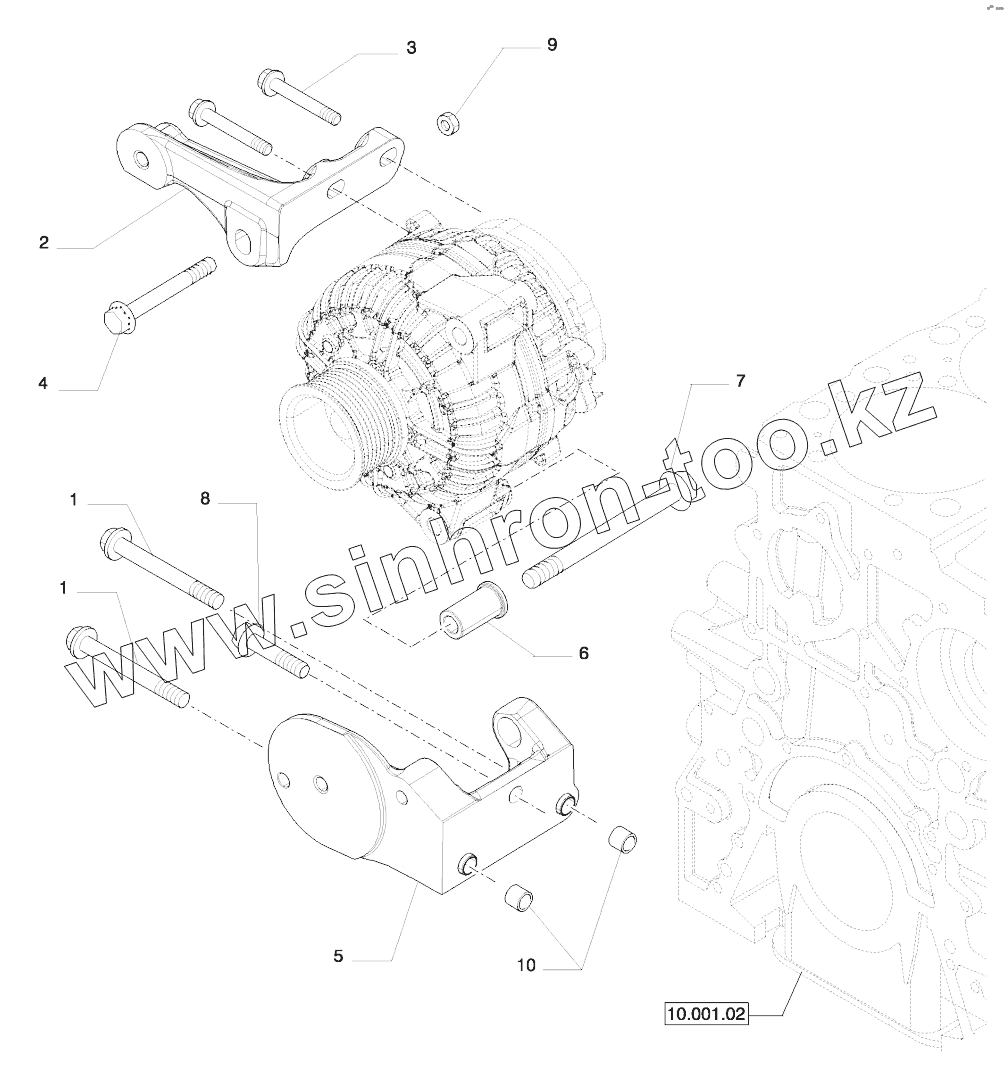 Каталог запасных частей к технике: New Holland T8. ENGINE, ALTERNATOR MOUNTING (504383238)