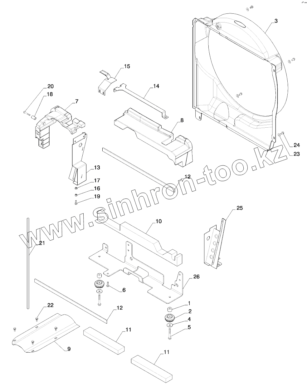 Каталог запасных частей к технике: New Holland T8. RADIATOR and FAN SHROUD - 4-ROW