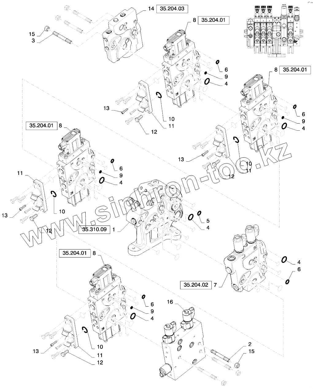 Каталог запасных частей к технике: New Holland T8. REMOTE HYDRAULIC VALVE 4 STACK