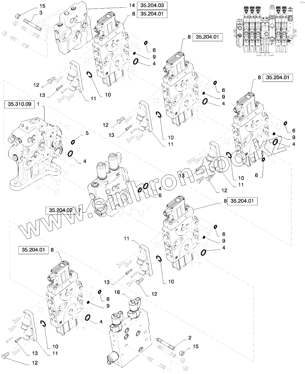 Каталог запасных частей к технике: New Holland T8. REMOTE HYDRAULIC VALVE 5 STACK