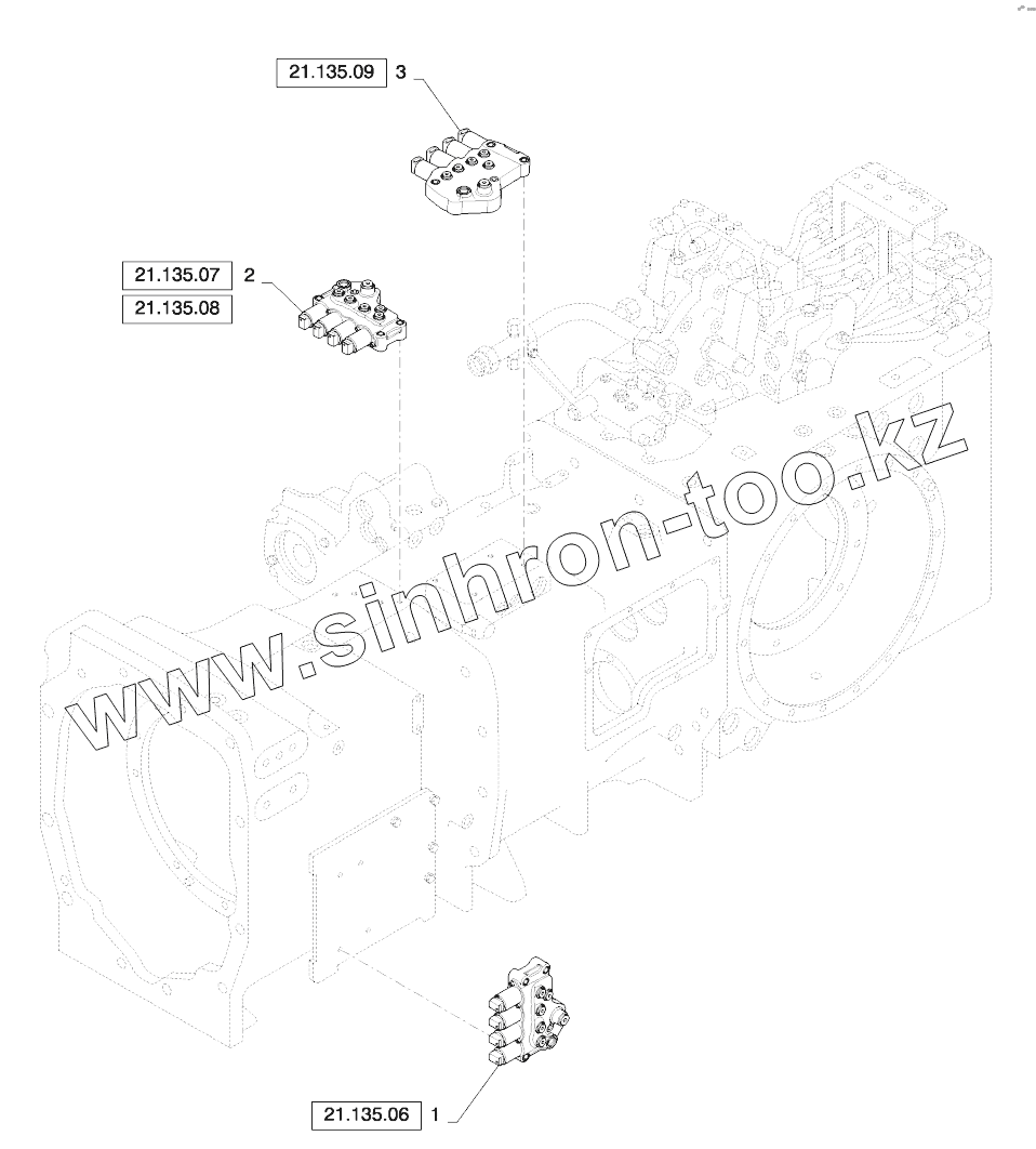 Каталог запасных частей к технике: New Holland T8. TRANSMISSION CONTROL VALVE LOCATION