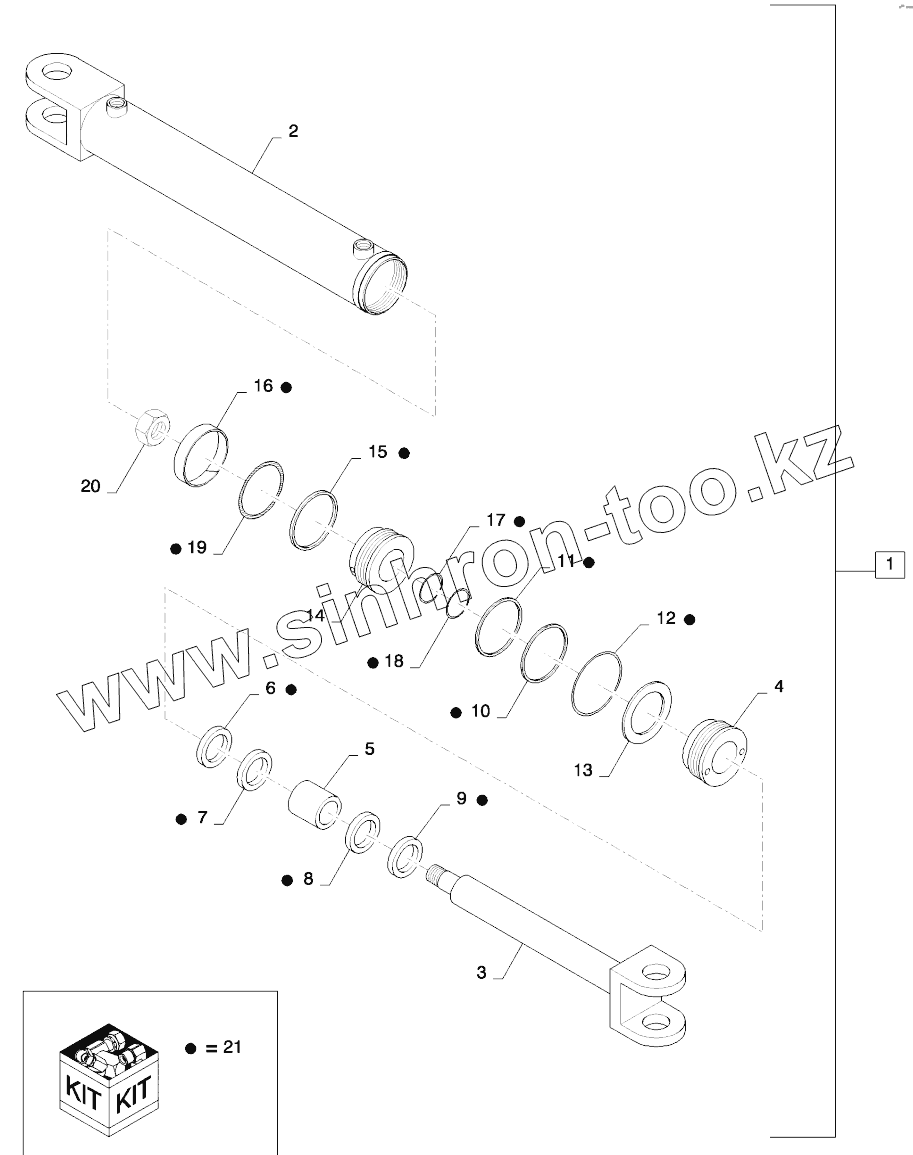 Каталог запасных частей к технике: New Holland T9.615, T9.670. STEERING CYLINDER - T9.615