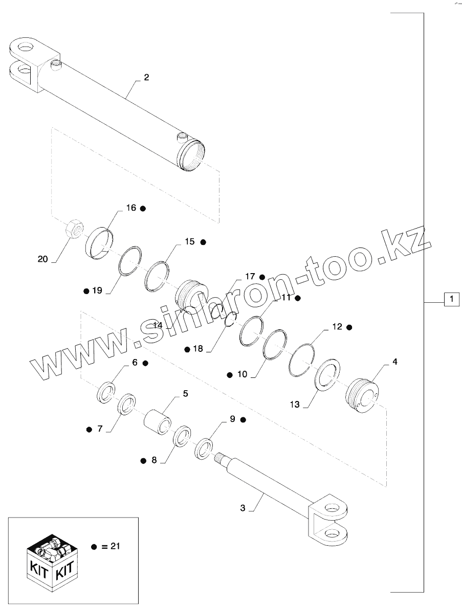 Каталог запасных частей к технике: New Holland T9.615, T9.670. STEERING CYLINDER - T9.670