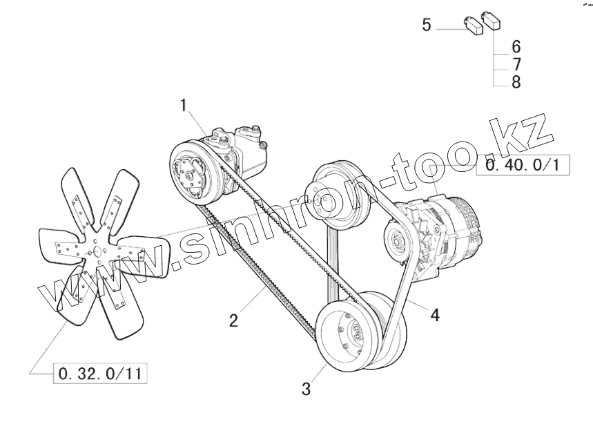 Каталог запасных частей к технике: New Holland TL5040. AIR CONDITIONING - BELTS and PULLEYS