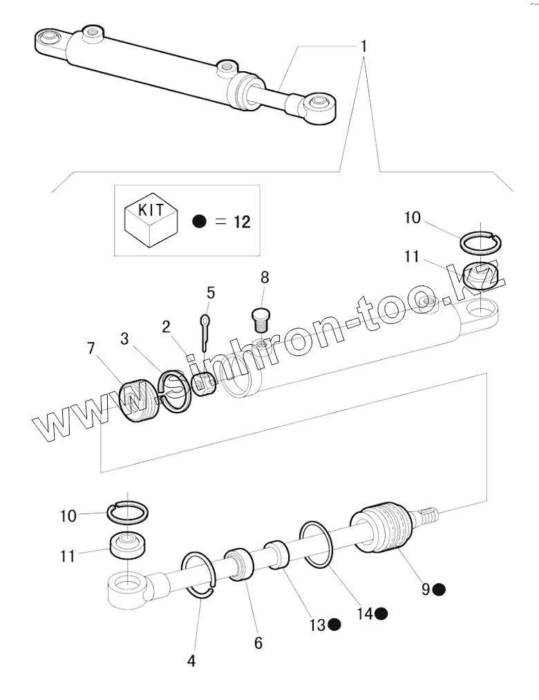 Каталог запасных частей к технике: New Holland TL5040. POWER STEERING CYLINDER PARTS (2WD)