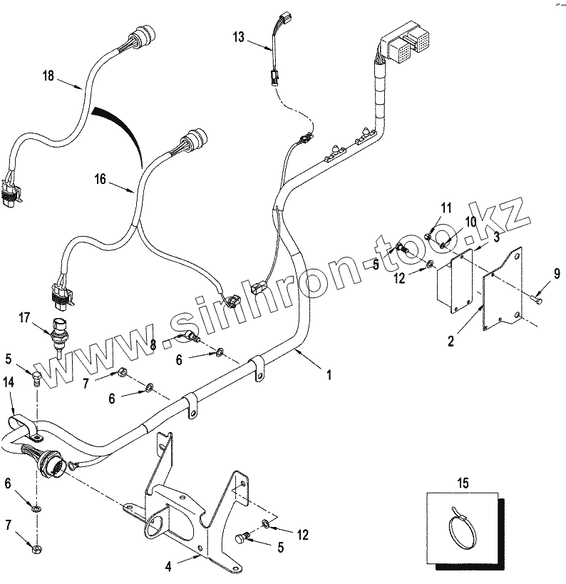 Каталог запасных частей к технике: New Holland Трактор TJ425 (часть 1). HARNESS, ENGINE, ASN RVS002701