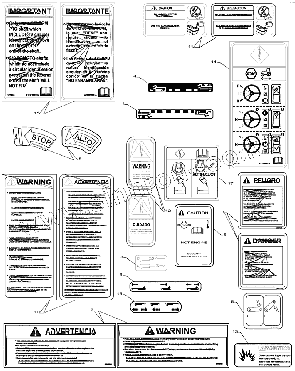 Каталог запасных частей к технике: New Holland TS6.110. 90.108.AA - DECALS, CONTROL INSTRUCTION