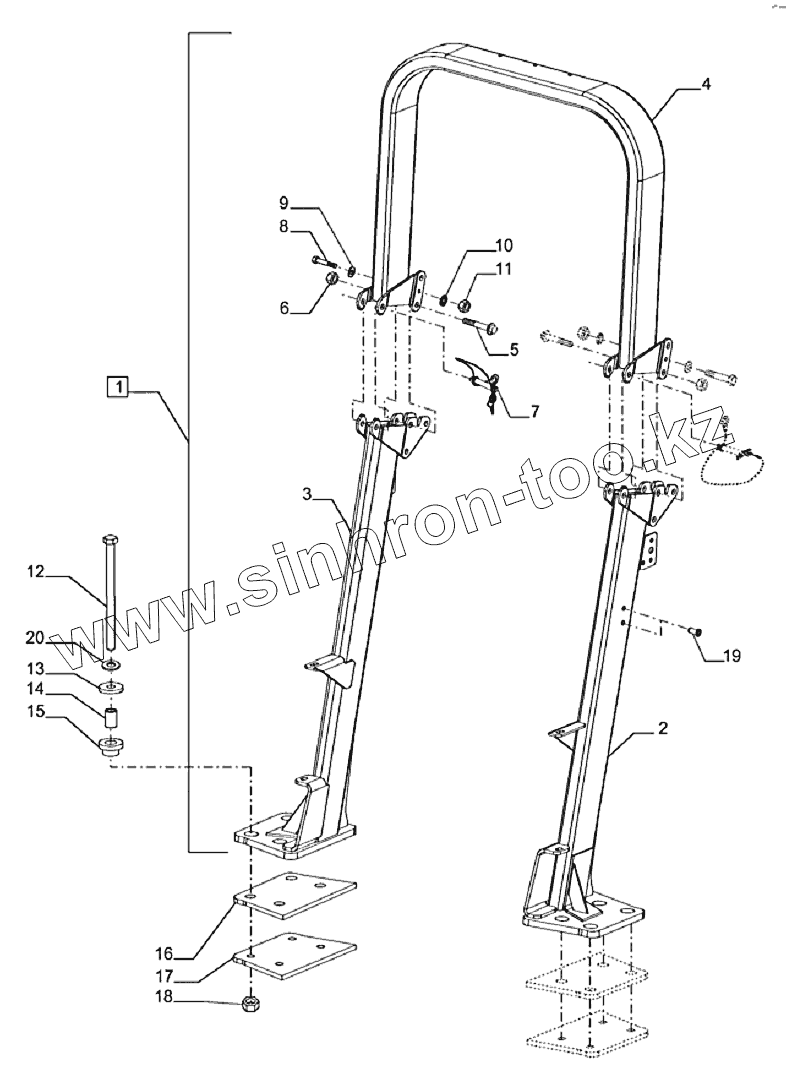 Каталог запасных частей к технике: New Holland TS6.110. 90.114.AQ - ROLLBAR ASSEMBLY, FOLDING