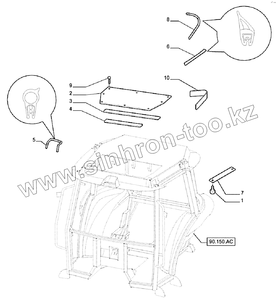 Каталог запасных частей к технике: New Holland TS6.110. 90.150.BC - INSULATOR, CAB