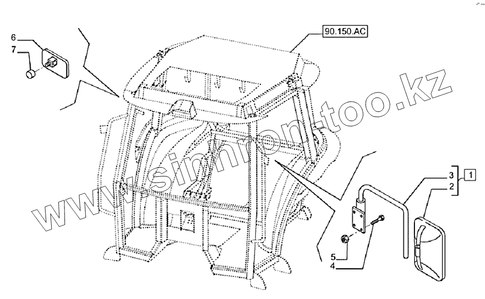 Каталог запасных частей к технике: New Holland TS6.110. 90.151.AK - MIRROR, REAR