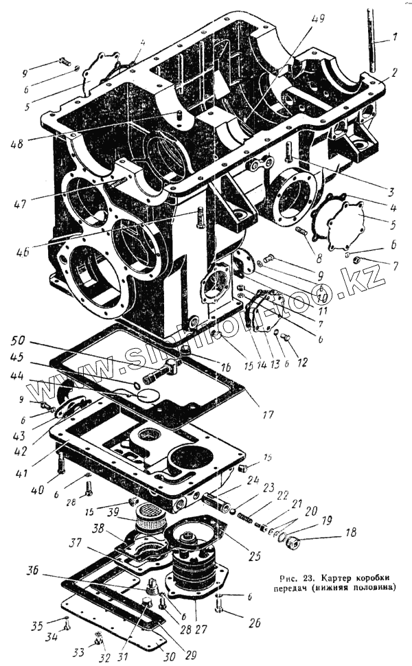 Каталог запасных частей к технике: ПТЗ К-700. Картер коробки передач (нижняя половина)