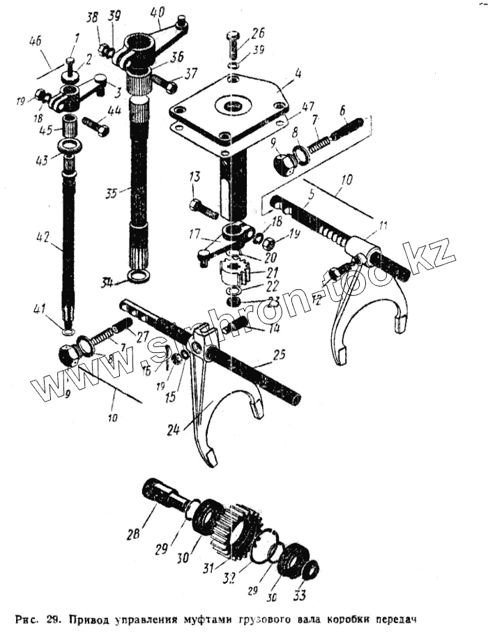 Каталог запасных частей к технике: ПТЗ К-700. Привод управления муфтами грузового вала коробки передач