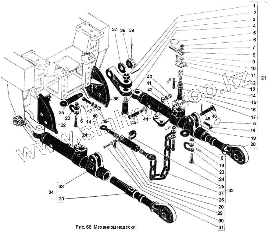 Каталог запасных частей к технике: ПТЗ К-701. Механизм навески
