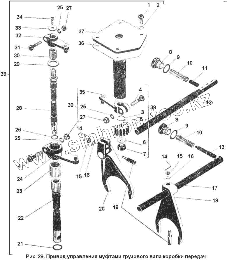Каталог запасных частей к технике: ПТЗ К-701. Привод управления муфтами грузового вала коробки передач