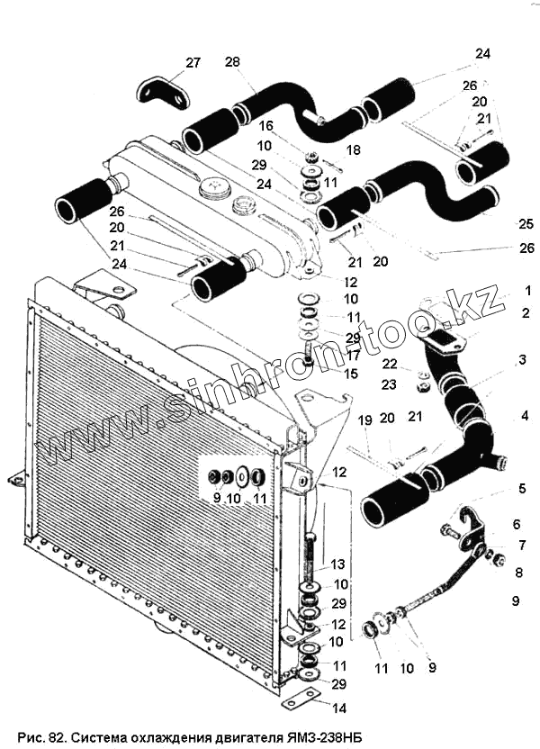Каталог запасных частей к технике: ПТЗ К-701. Система охлаждения двигателя ЯМЗ-238НБ