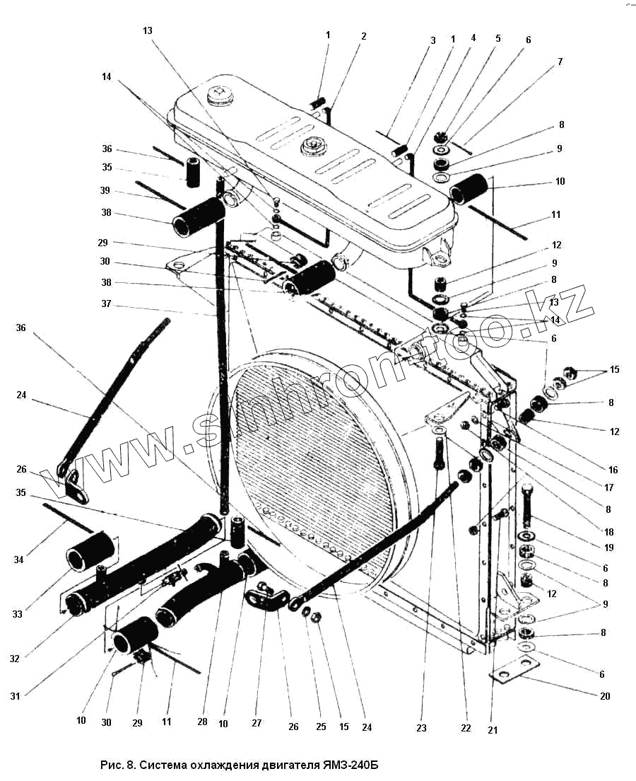 Каталог запасных частей к технике: ПТЗ К-701. Система охлаждения двигателя ЯМЗ-240Б