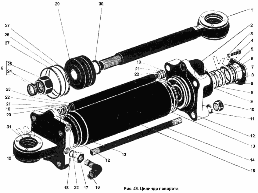 Каталог запасных частей к технике: ПТЗ К-701. Цилиндр поворота