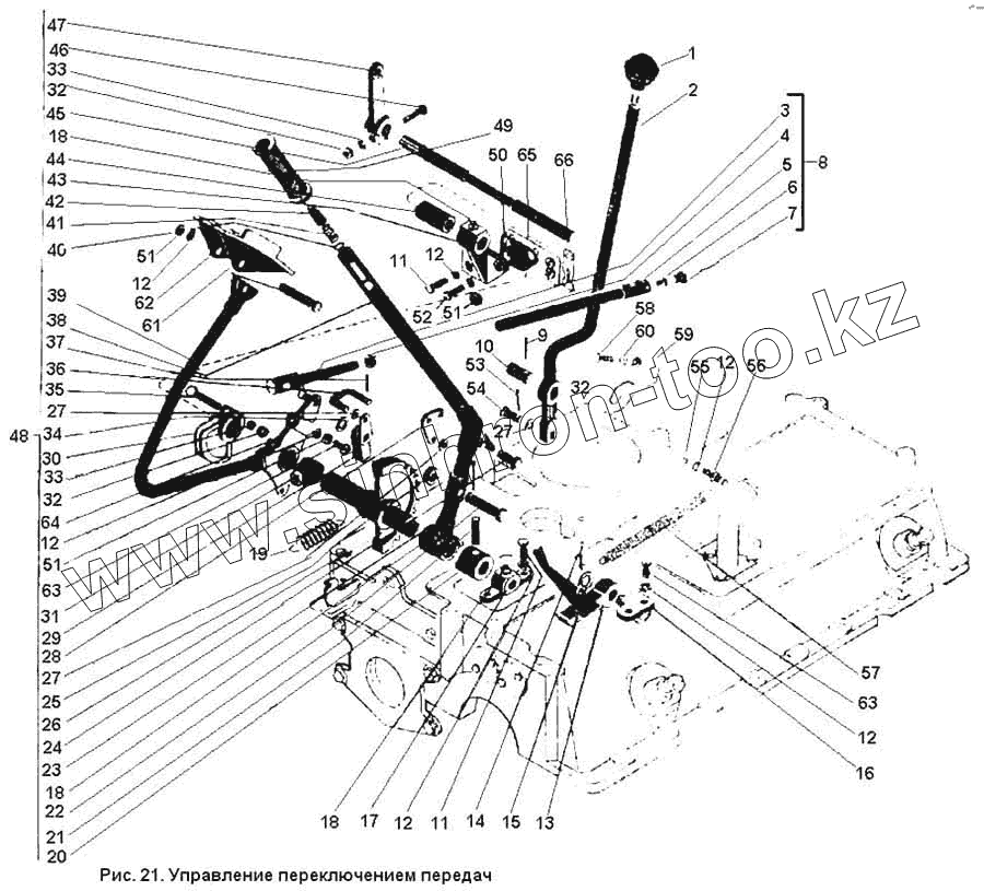 Каталог запасных частей к технике: ПТЗ К-701. Управление переключением передач