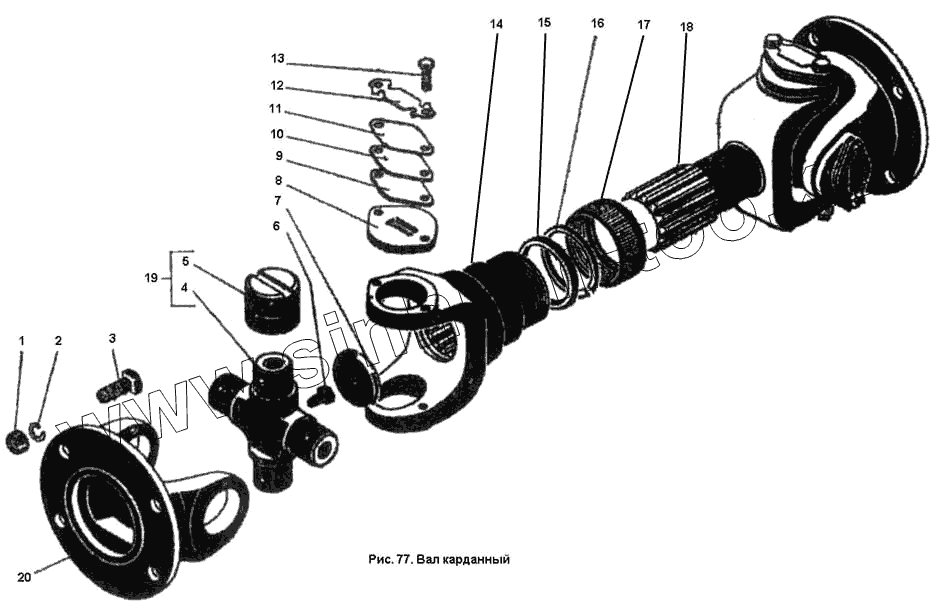 Каталог запасных частей к технике: ПТЗ К-701. Вал карданный