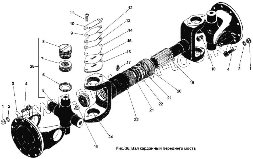 Каталог запасных частей к технике: ПТЗ К-701. Вал карданный переднего моста