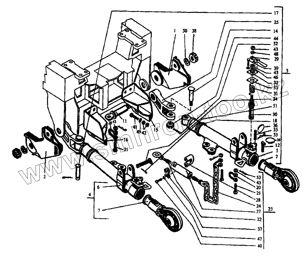 Каталог запасных частей к технике: ПТЗ K-744P1. Механизм навески (нижняя часть)