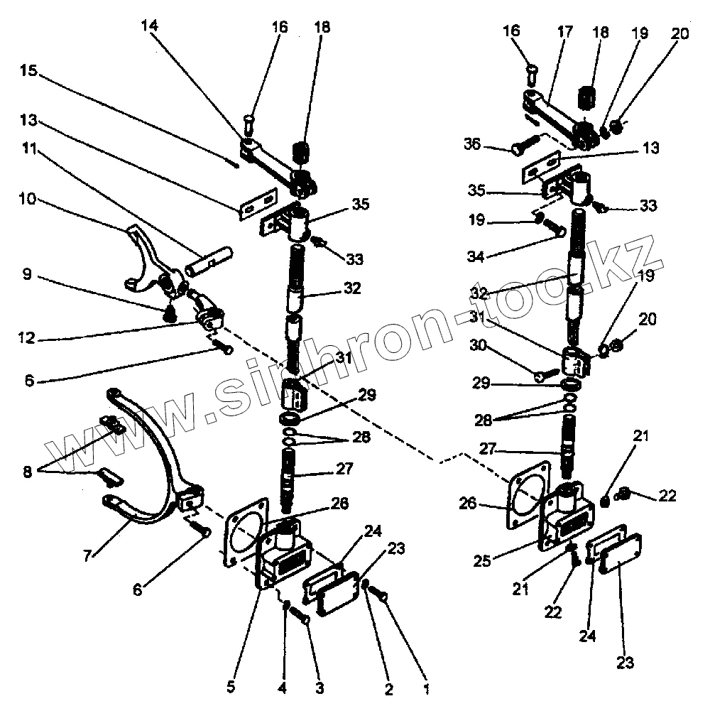 Каталог запасных частей к технике: ПТЗ K-744P1. Привод управления муфтами раздаточного вала