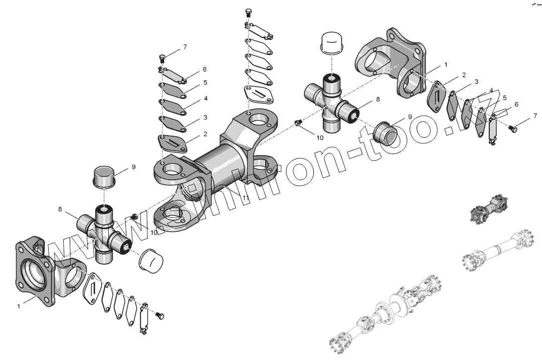 Каталог запасных частей к технике: ПТЗ К-744Р1 "Стандарт". 700А.22.08.000-2 Вал карданный