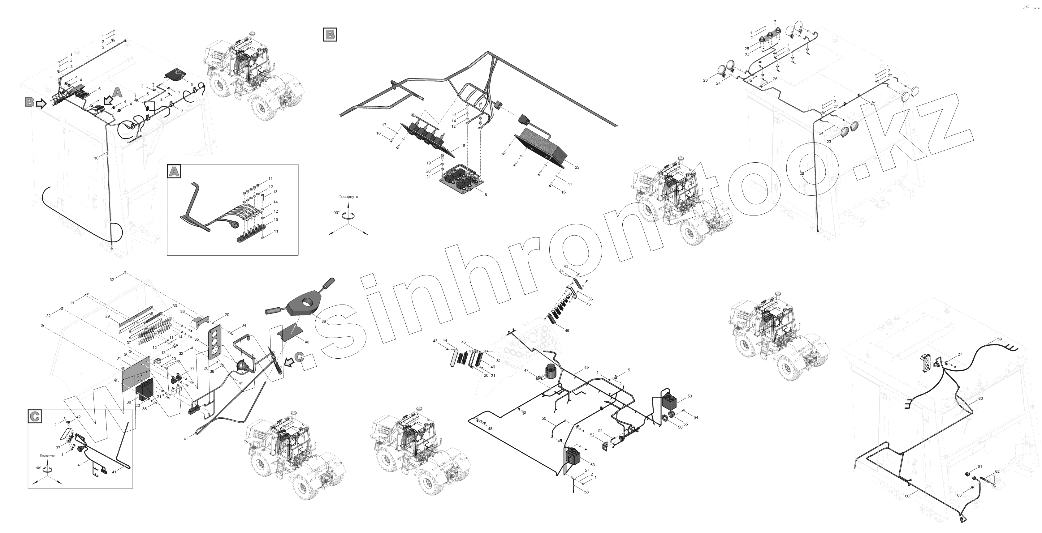 Каталог запасных частей к технике: ПТЗ К-744Р1 "Стандарт". 744Р1-3799000 Электрооборудование кабины