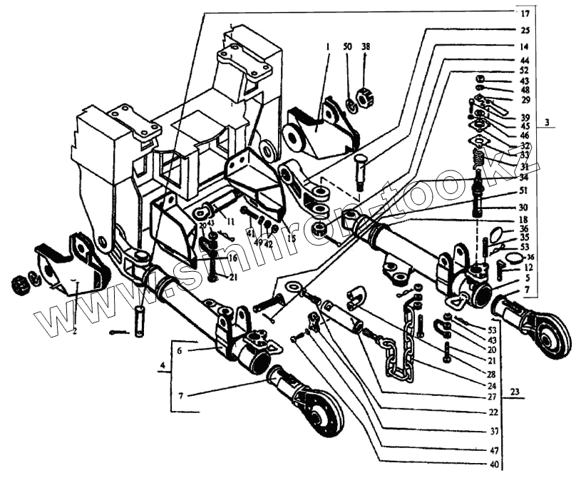 Каталог запасных частей к технике: ПТЗ К-744Р2. Механизм навески (нижняя часть) входит в 744-4628000