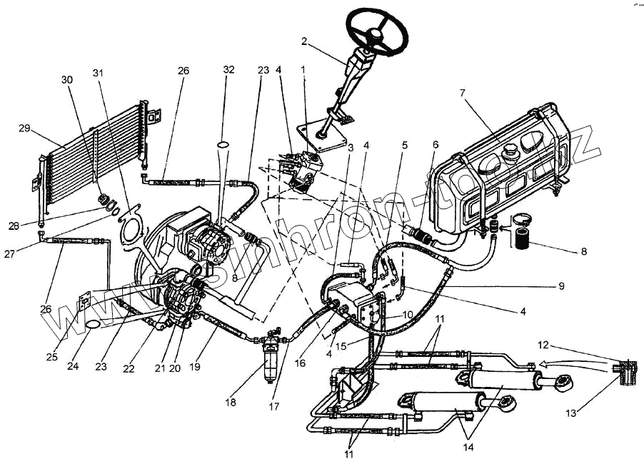 Каталог запасных частей к технике: ПТЗ К-744Р2. Схема гидравлической системы управления поворотом 703MA-3400000