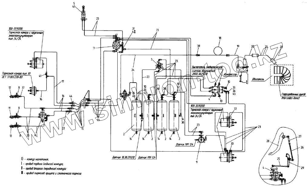 Каталог запасных частей к технике: ПТЗ К-744Р2. Схема пневматическая тормозной системы 742P2-3500000-3