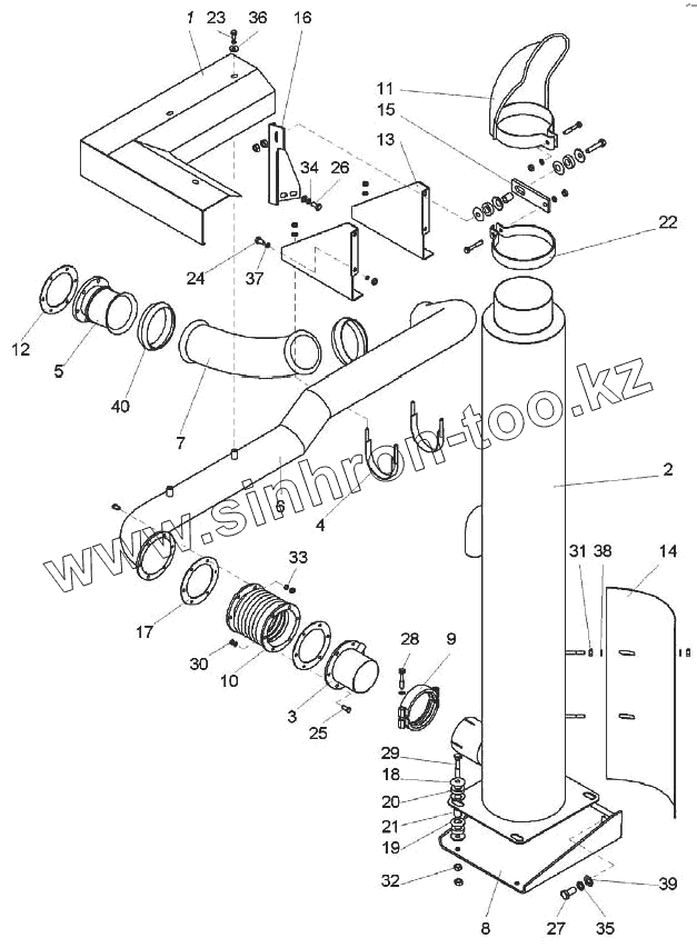 Каталог запасных частей к технике: ПТЗ К-744Р2. Система выпуска отработавших газов 744Р2-1200000-2