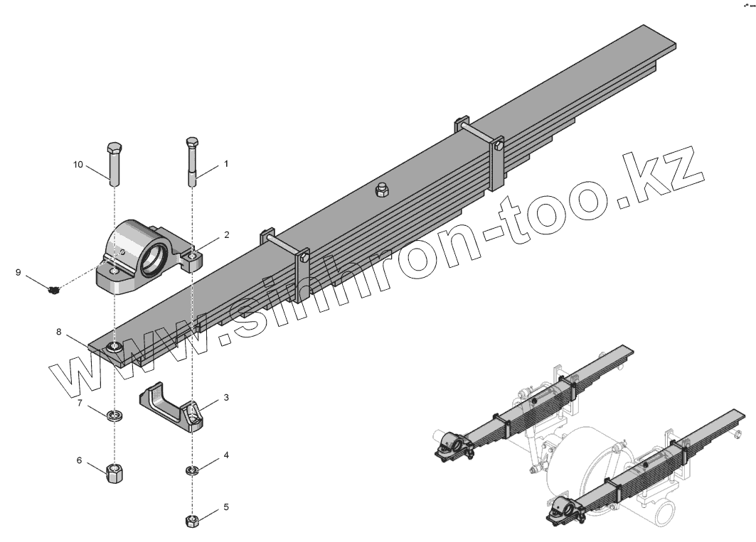 Каталог запасных частей к технике: ПТЗ К-744Р2 "Премиум". 2256010-2900080-2 Рессора с ушком