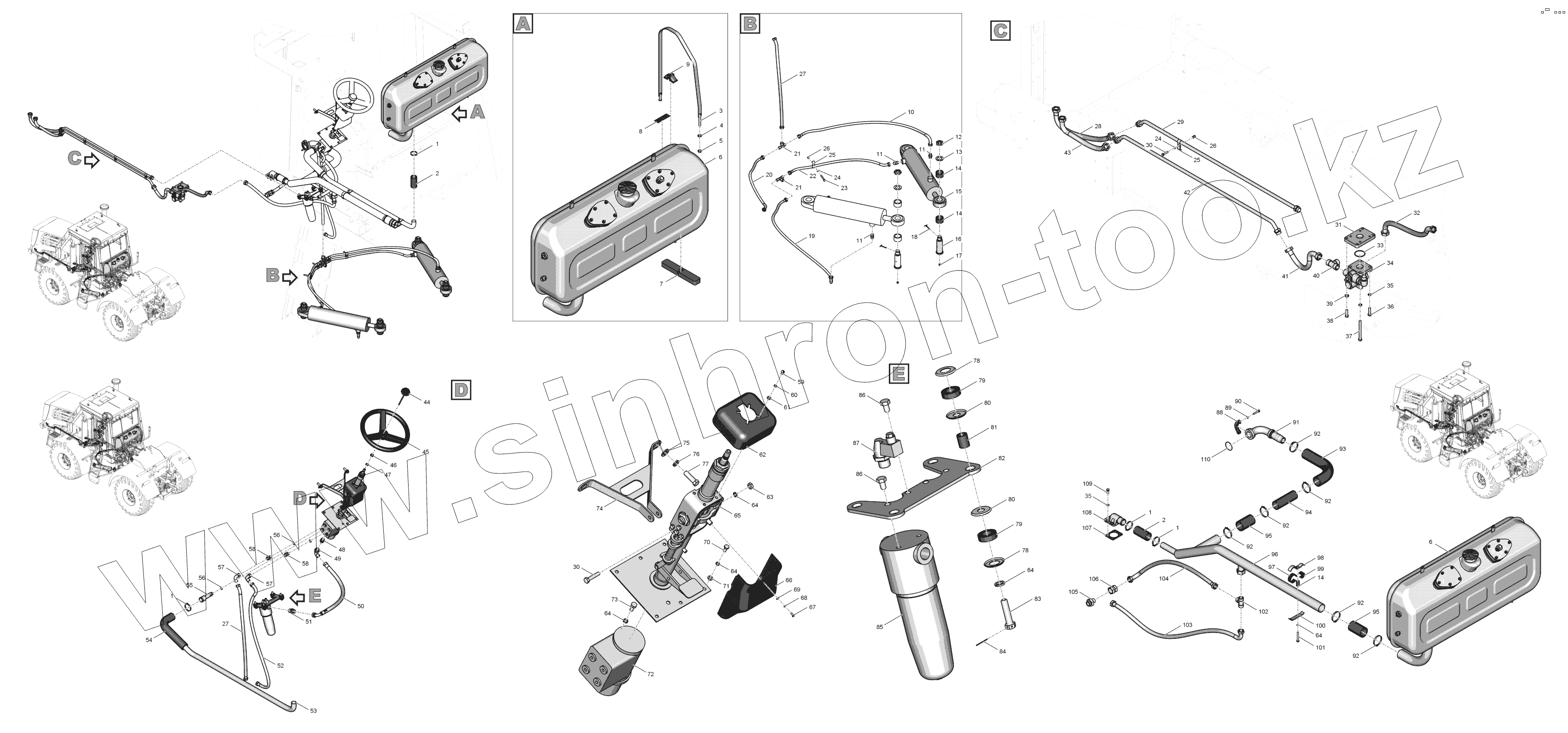 Каталог запасных частей к технике: ПТЗ К-744Р2 "Премиум". 744Р2-3400000-3 Гидросистема управления поворотом