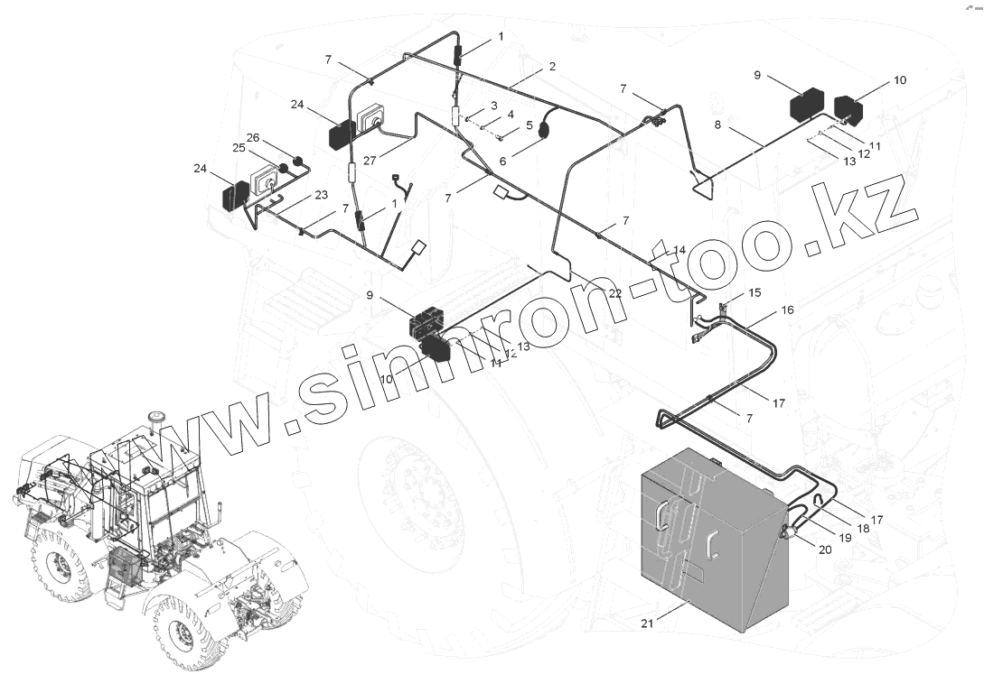 Каталог запасных частей к технике: ПТЗ К-744Р2 "Премиум". 744Р2-3798000-5 Электрооборудование передней полурамы